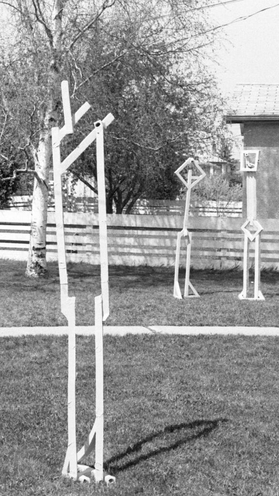 Noch in den aberwitzigsten Darstellungen sind wir bereit nach uns zu forschen und uns bzw. unsere Neigungen zu erkennen. Diesem Gedanken folgend wurden aus maschinell gefertigtem Halbzeug (hier extrudierte Rohre mit quadratischem Querschnitt) filigrane Formen erstellt die etwa menschliche Größe haben und derer Gliederungen an die menschliche Proportionen angelehnt sind.