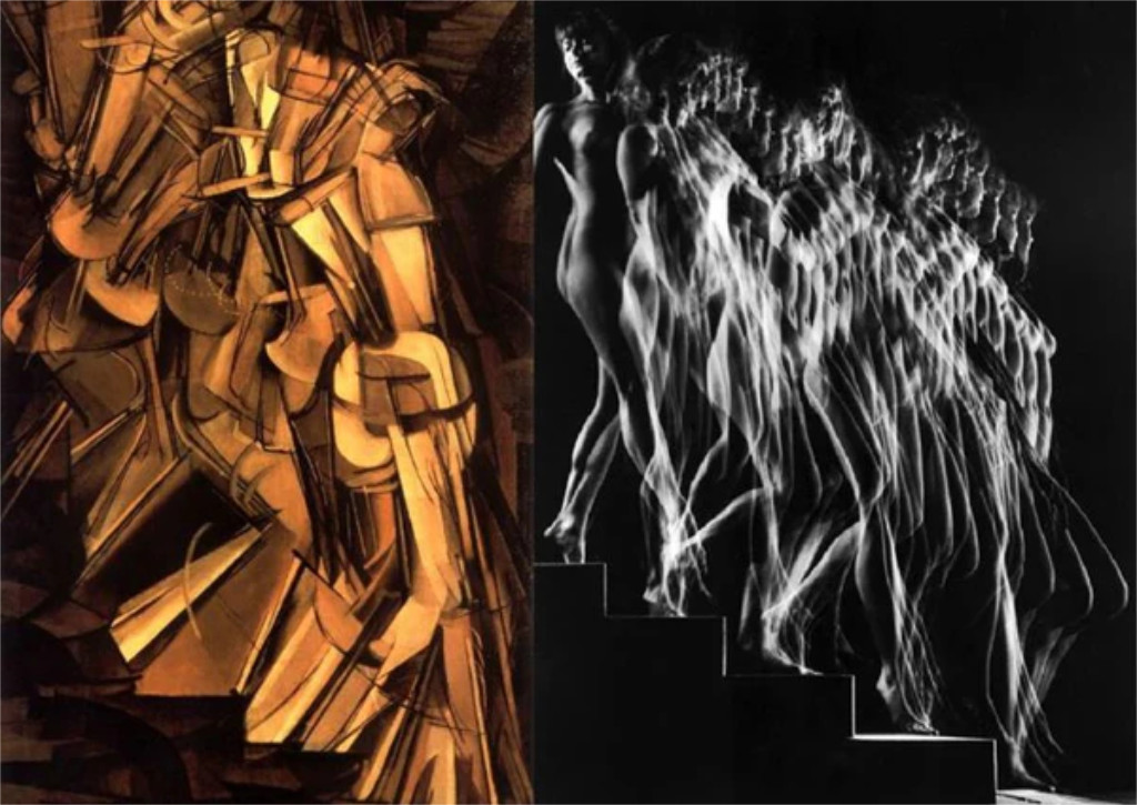 ◄ Nude Descending a Staircase no.2 – 1912. Right: Marcel Duchamp emanates his famous painting in LIFE Magazine