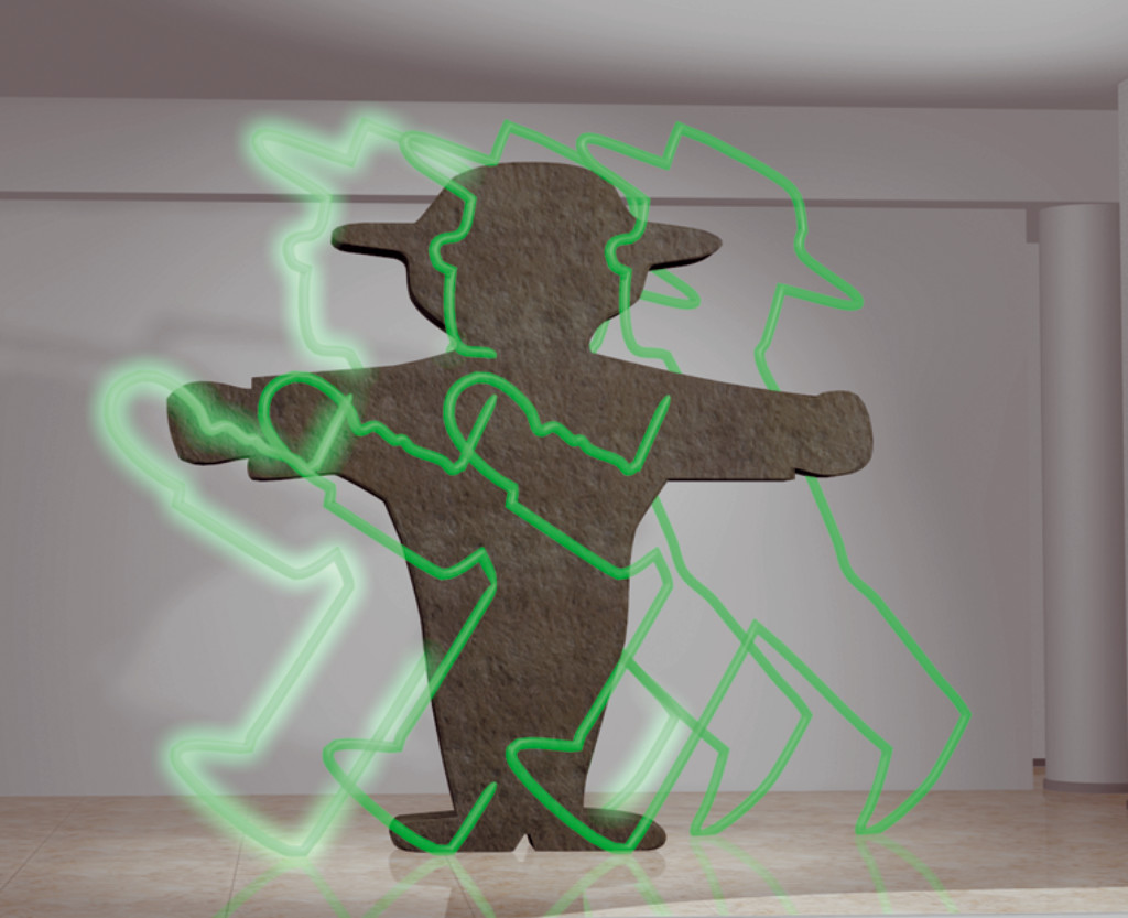 Die drei „Go“-Figuren sollen aus Leuchtstoffröhren hergestellt werden.