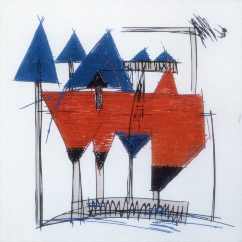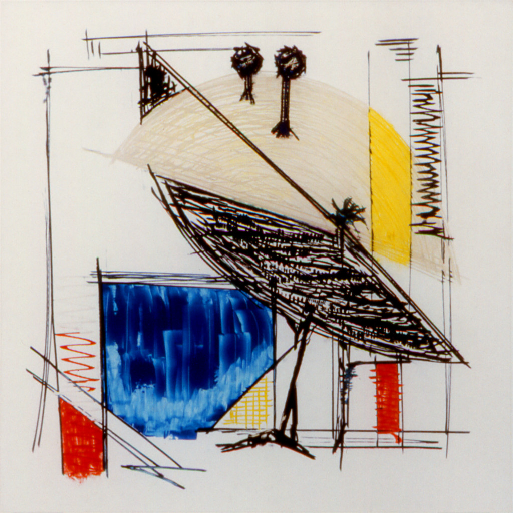 Die Formensprache sucht sehr freie Assoziationen an die frühzeitliche Bilderschrift der Sumerer. Zeichenelemente aus diesem Formrepertoire wurden kombiniert und übereinandergelagert.