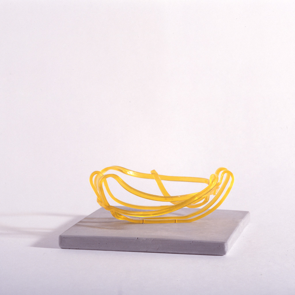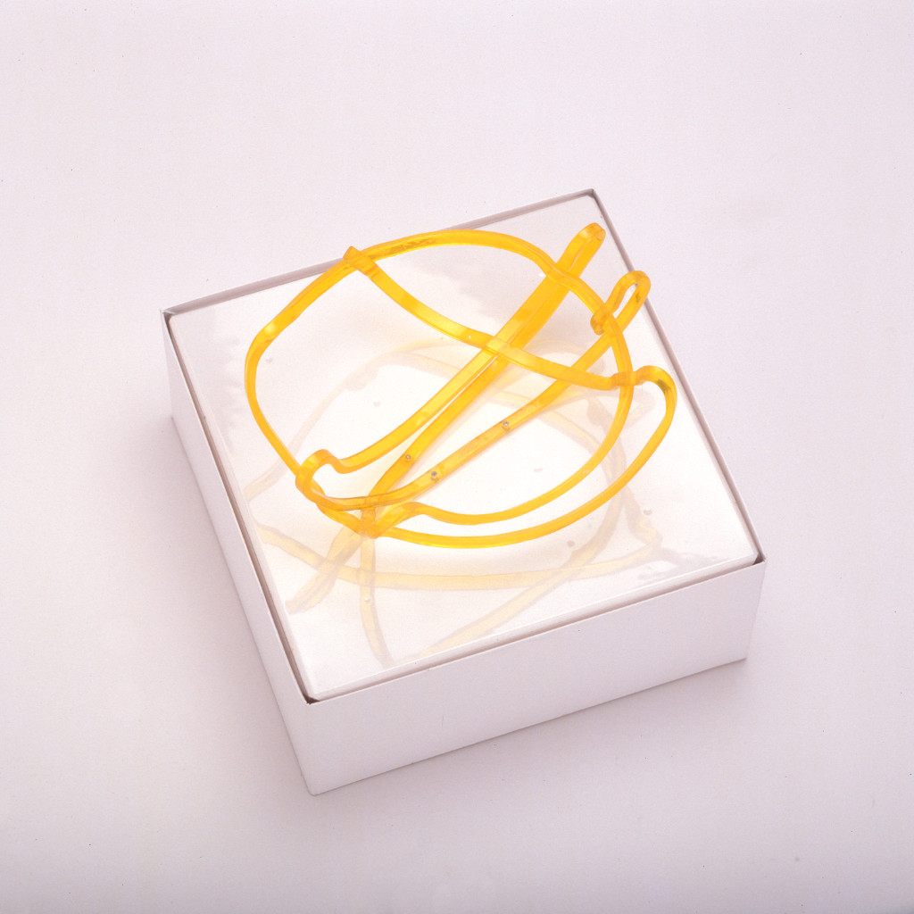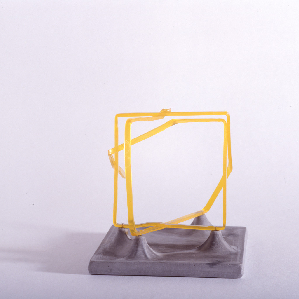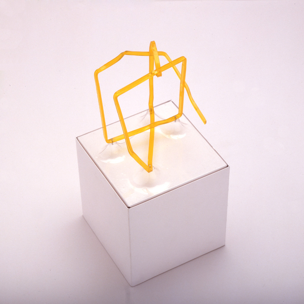 Zur Beschreibung eines Körper wird hier mit farbigem Acrylglas eine durchgängige Linie aufgelegt. Wird dieser Körper anschließend entfernt, bleibt die Linie als Objekt im Raum stehen.