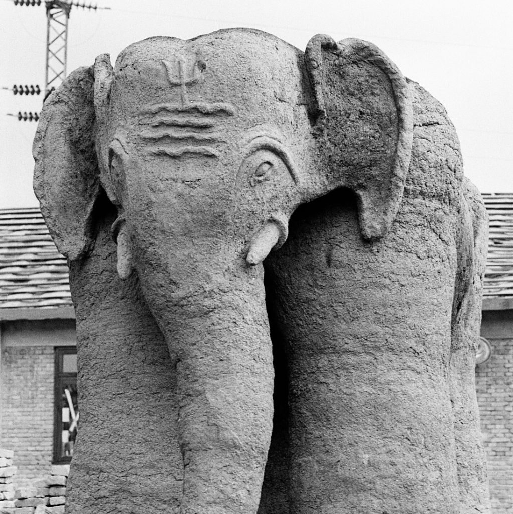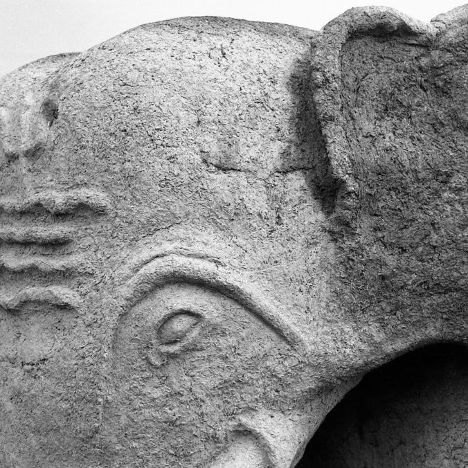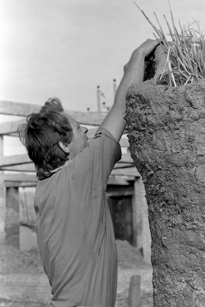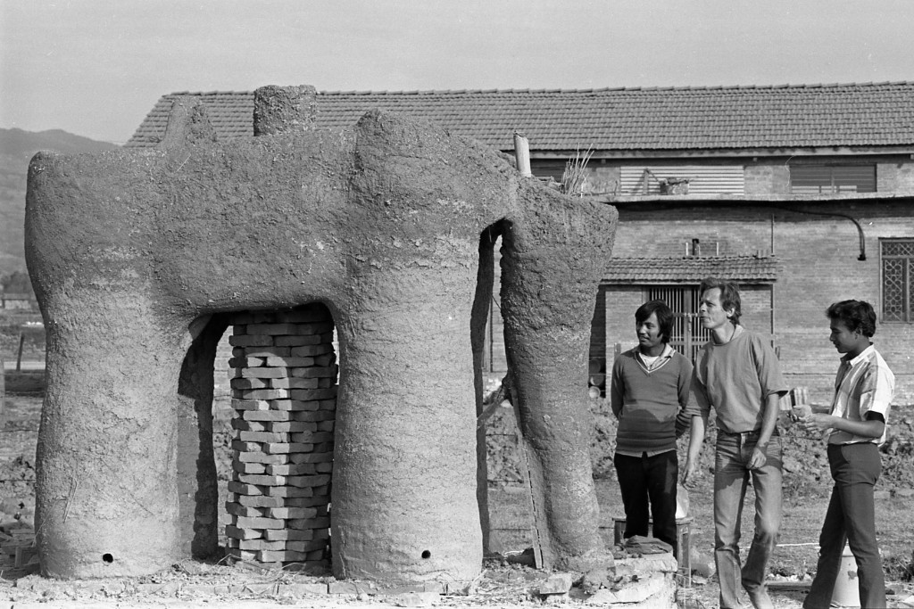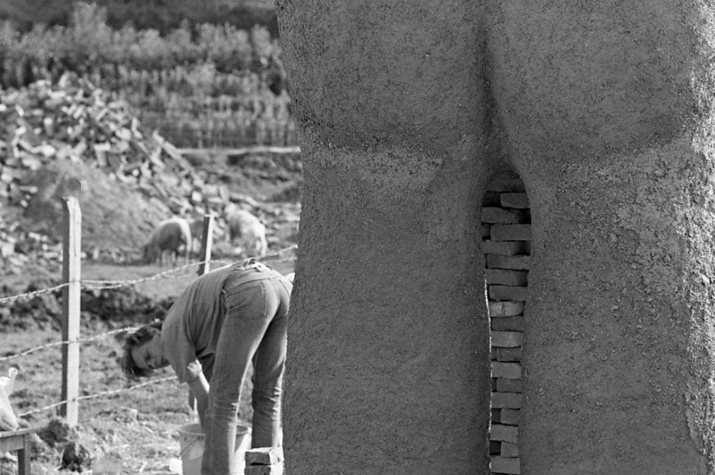Der Sockel der Skulptur ist mit Feuerungskanälen durchzogen, weil er gleichzeitig die Basis des Brennofens ist. Der eigentliche Ofen wurde aus ungebrannten Ziegeln um das Objekt gebaut.