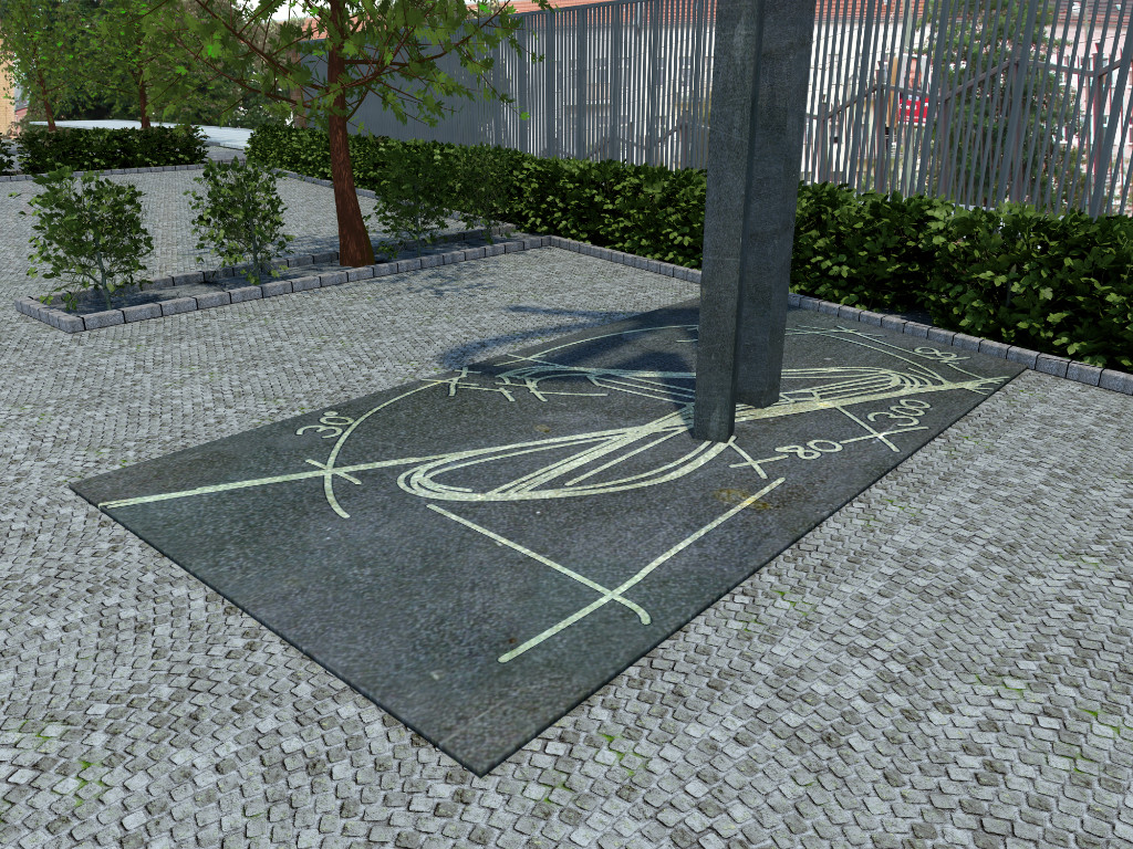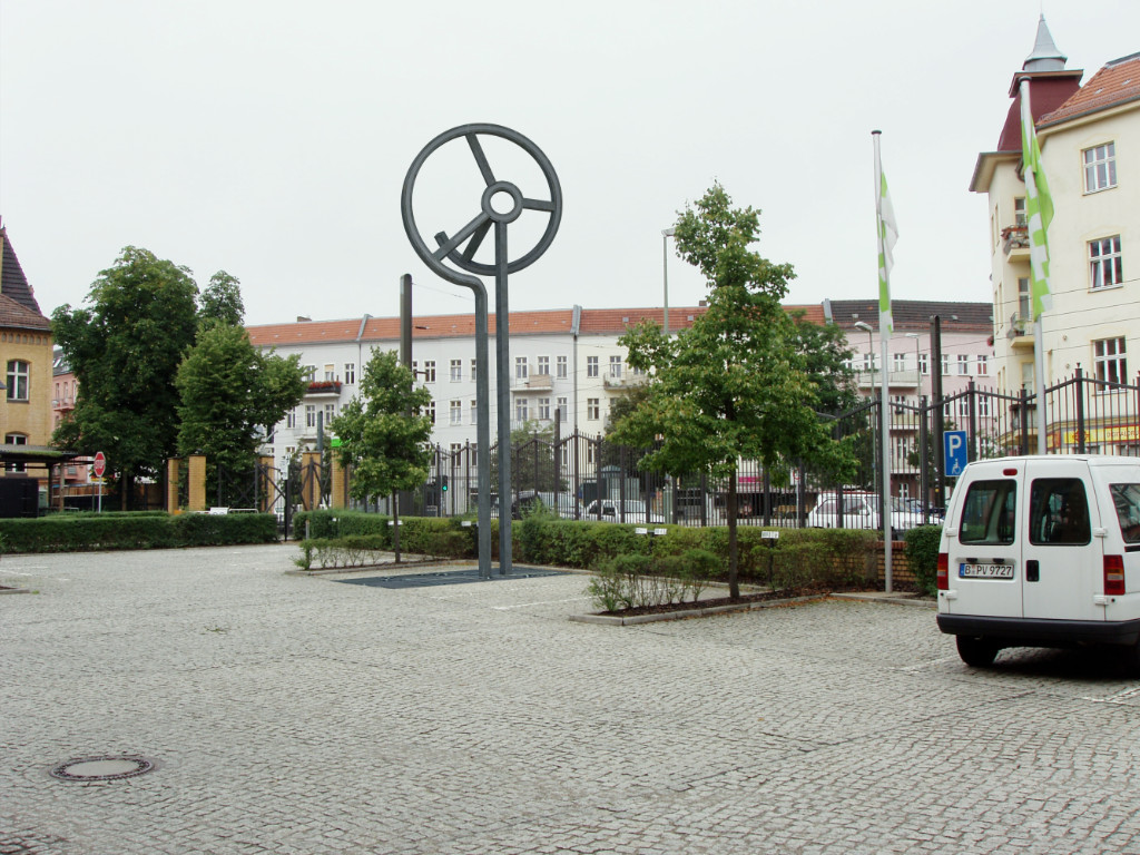Die Grundplatte ist ebenerdig eingelassen und wird nicht durch einen Höhenunterschied von der Umgebung abgegrenzt. Sollte also jemand sein Fahrrad an diese Skulptur lehnen ist dies kein störender Eingriff in die Funktion der Kunst, sondern der alltägliche Umgang mit den Gegebenheiten unserer Umwelt.
