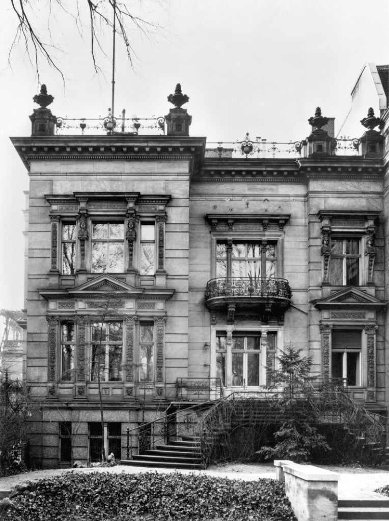 Im weiteren Verlauf der Achse wird der im Bearbeitungsgebiet liegende Teil des Gebäudegrundrisses gezeigt. Die Kontur wird durch eine niedrige, an der Oberseite abgeschrägte Mauer nachvollzogen. Die Fläche des ehemaligen Baukörpers wird mit Lavaschotter belegt.