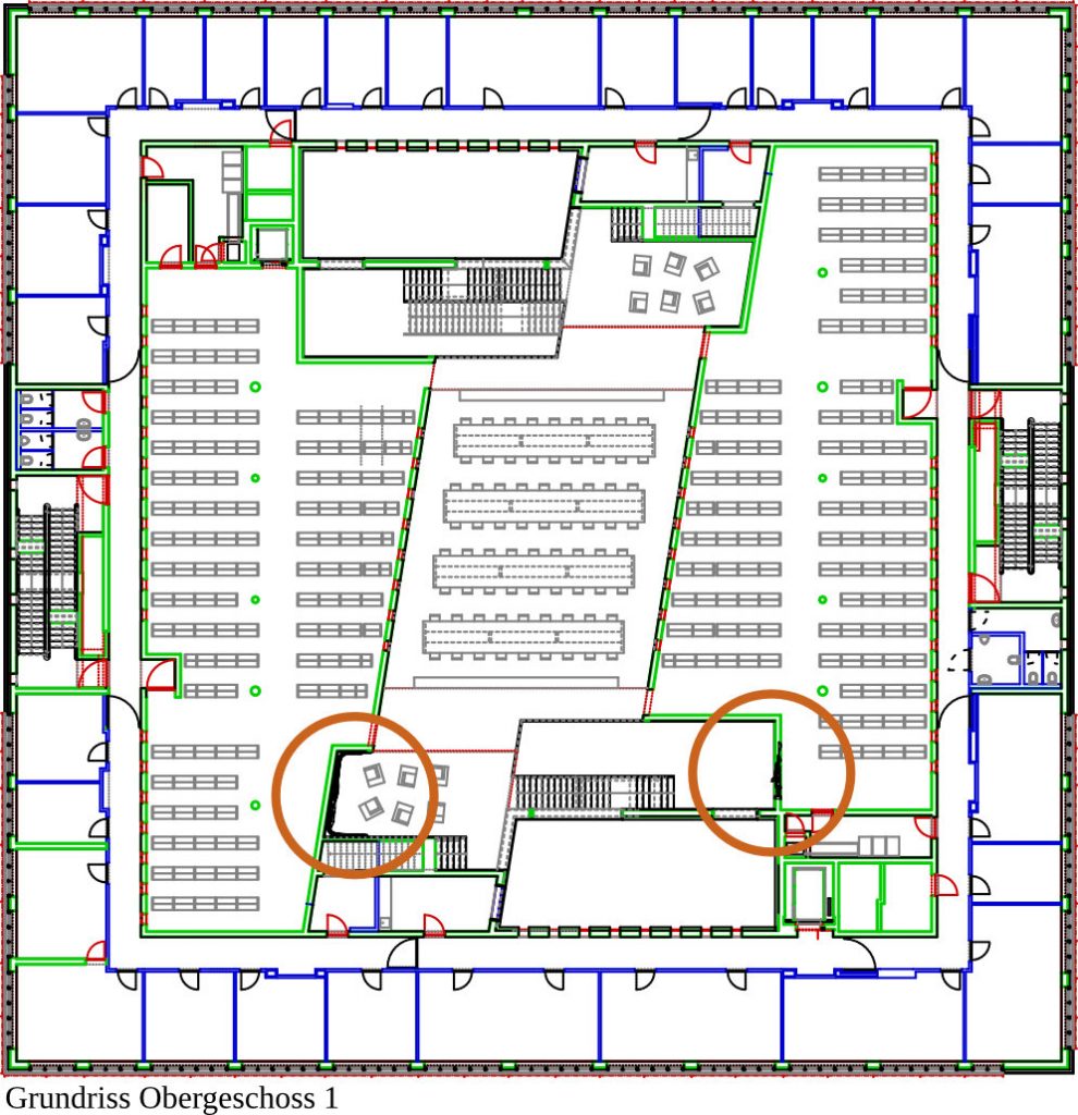 Das Einbringen einer künstlerischen Äußerung an den Leseplätzen oder in den Magazinen kann die Aufgabe des Gebäudes daher nicht unterstützen.