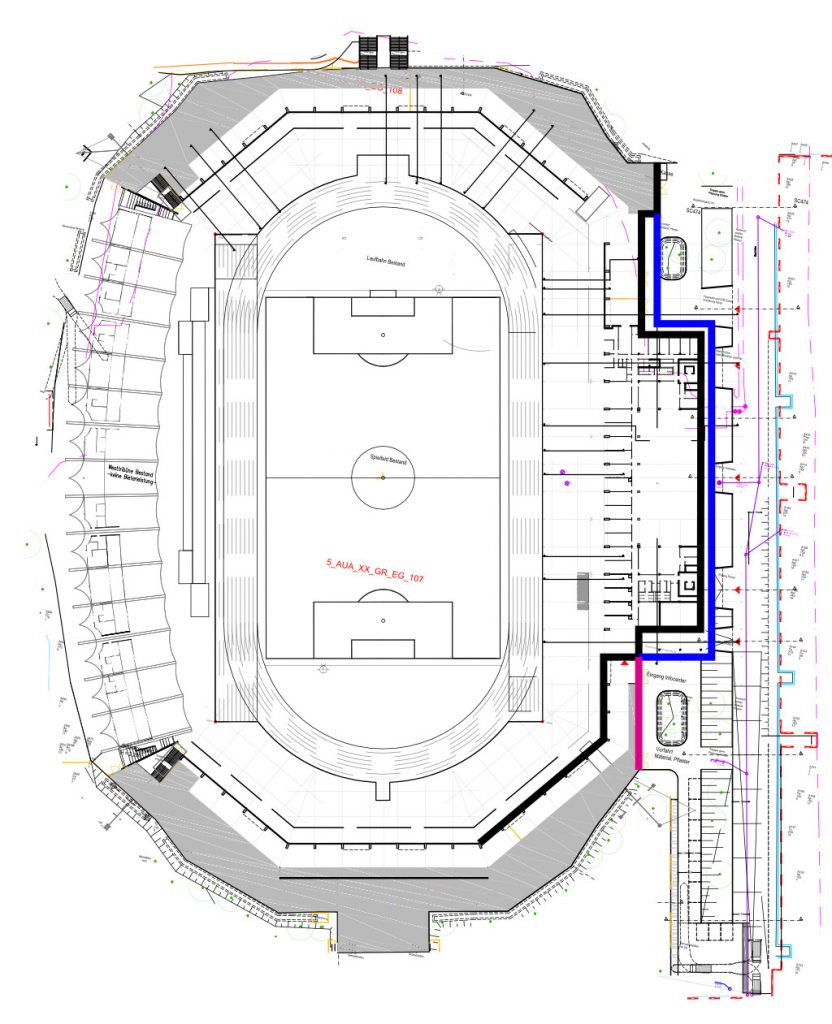 Grundriss der Multifunktionsarena mit Markierung des Wettbewerbsgebiets